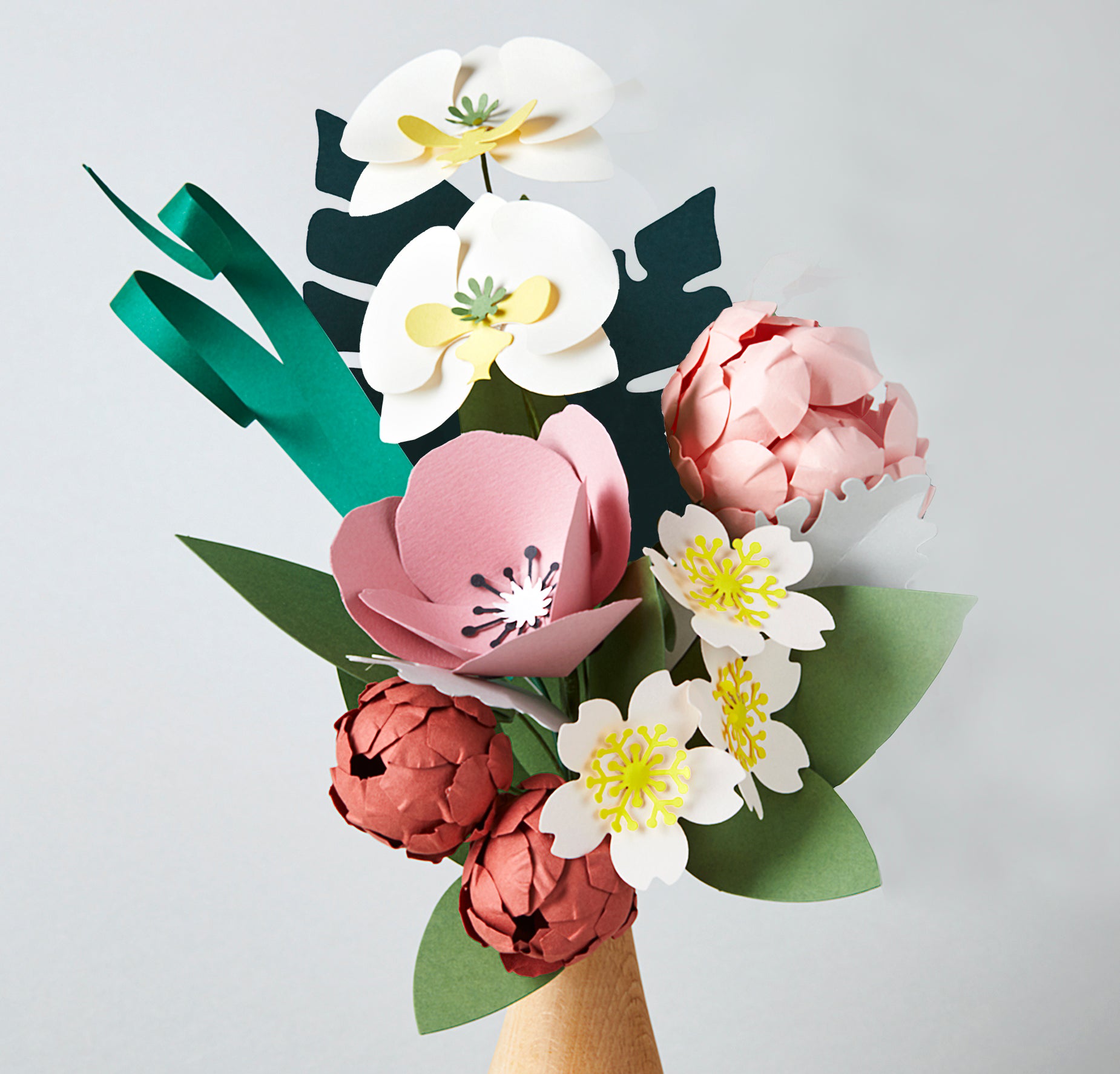 Çiçekler: 160-300 gsm ağırlığında, hamuru boyalı, FSC, PEFC sertifikalı ithal kartondan üretilmektedir.