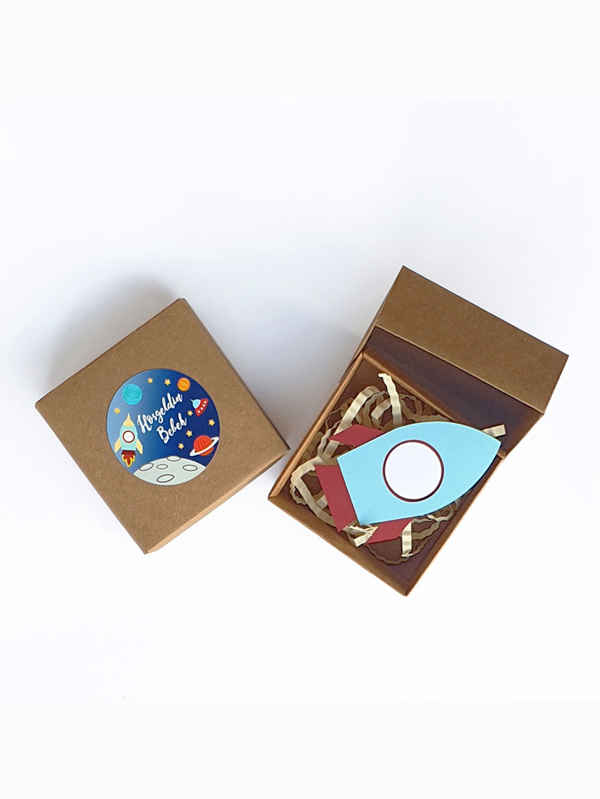 Figürler: El yapımı karton roketler, 160-300 gsm ağırlığında, hamuru boyalı, FSC, PEFC sertifikalı ithal kartondan üretilmiştir. Arkasında daire mıknatıs bulunur.